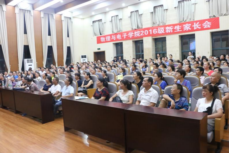 9月2日晚7:00,物理与电子公司2016级新生家长会于物理楼116报告厅顺利召开。公司党委书记许宏武,副经理孙克辉、徐富新,党委副书记谢群出席家长会, 200余名新生家长参加了此次会议。