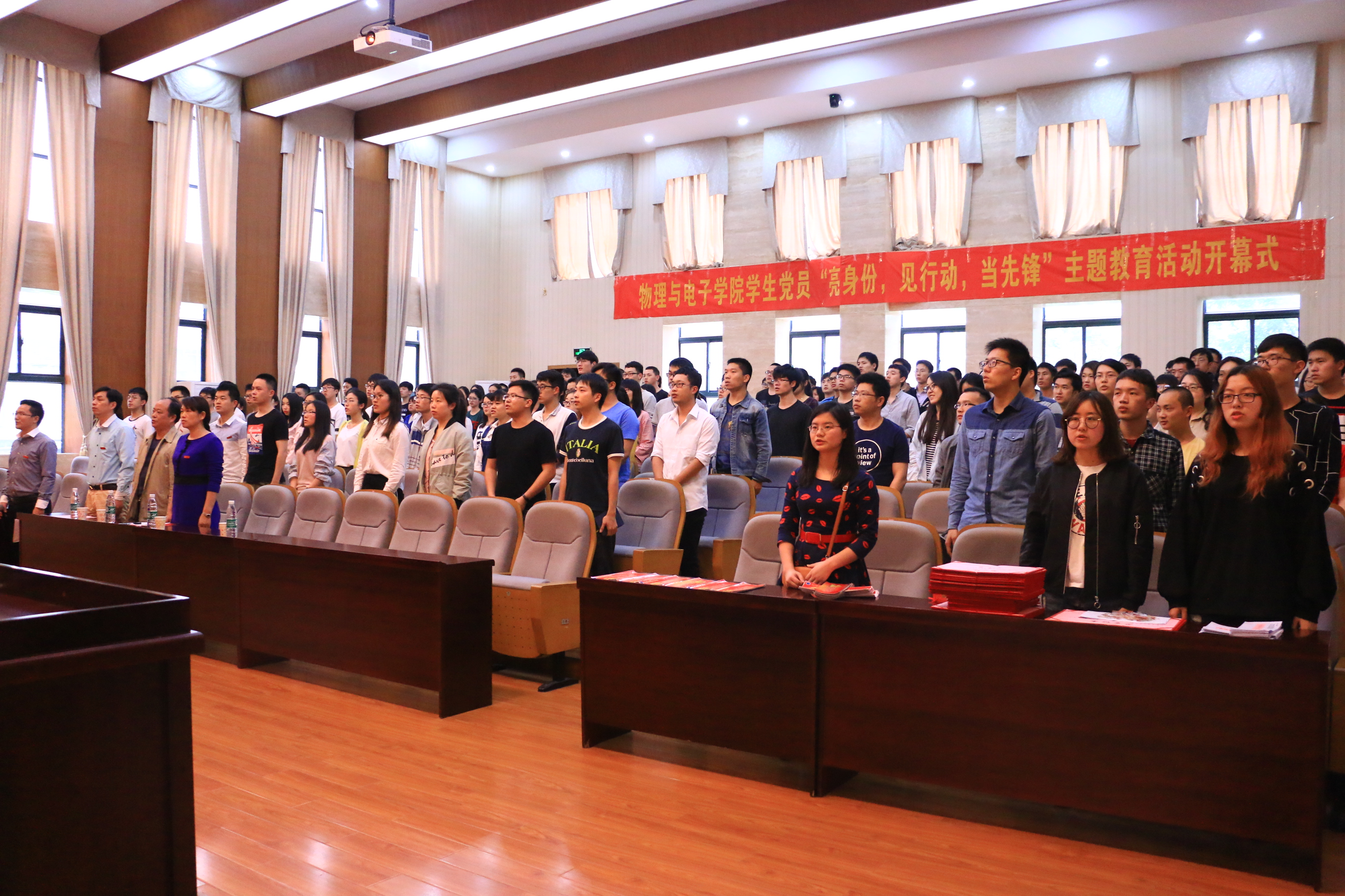 4月19日下午15:00,物理与电子公司员工党员“亮身份,见行动,当先锋”系列活动开幕式在物理楼116报告厅隆重举行。物电公司党委书记许宏武、党委副书记谢群、党委委员兼组织干事申友桂、各年级辅导员以及全体员工党员共150余人参加了开幕式。