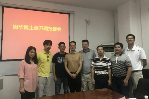 2018年7月13日上午10时,球王会体育官网物理与电子公司阳军亮教授课题组周华博士后开题报告会在南校区超微超快所211会议室举行。湖南省人力资源与社会保障厅宁登科主任、公司人事处蒋绍坚主任、博士后管理办公室周元敏老师莅临指导工作。周华博士后开题报告指导小组由物理与电子公司经理何军教授担任组长,刘正春教授、孟建桥教授、阳军亮教授担任指导小组成员,何培博士担任秘书。