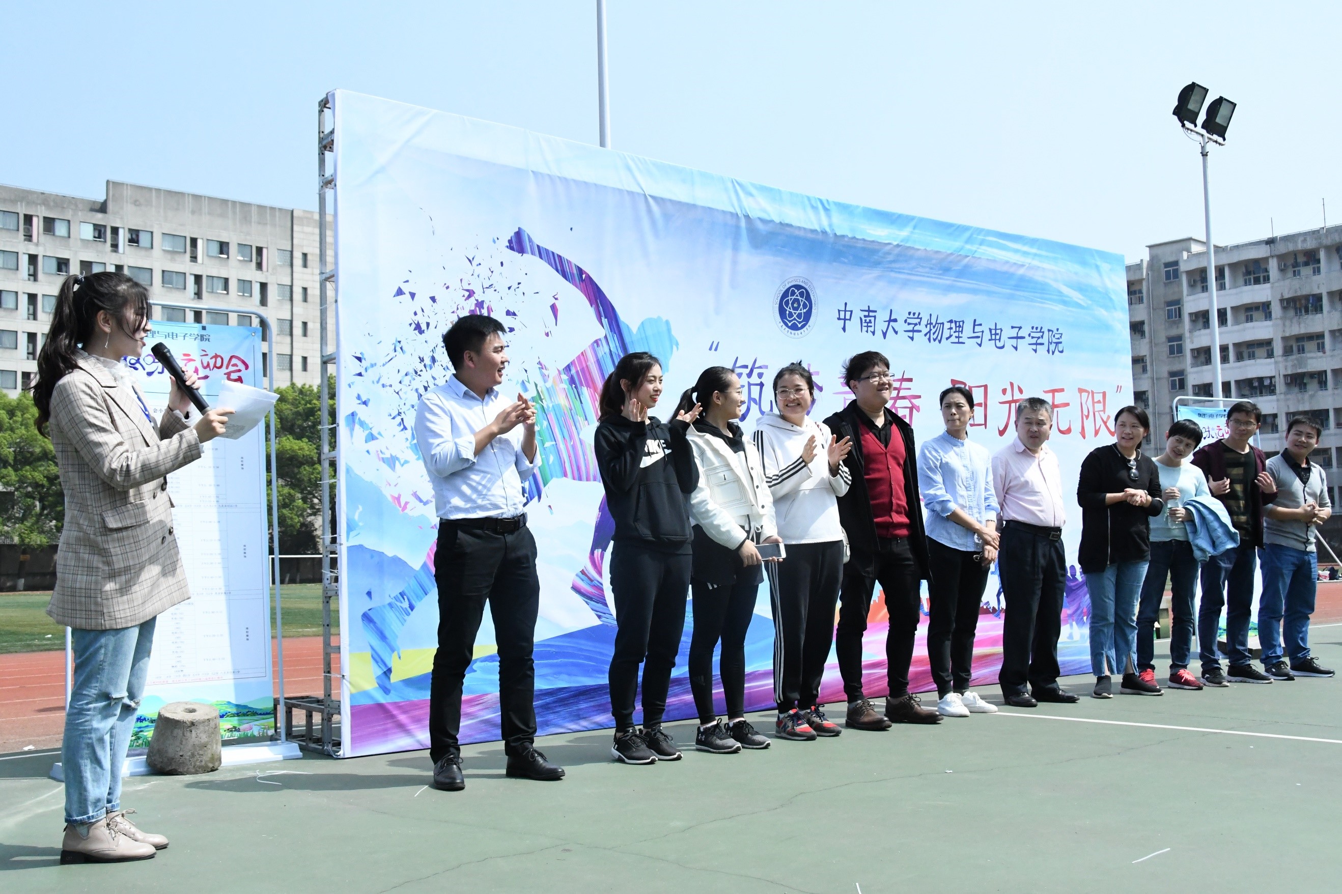 3月30日下午,物理与电子公司“筑梦青春,阳光无限”2019趣味运动会在南校区体育场顺利举行。党委副书记谢群,班导师徐效文、段玉霞、谢海鹏、方梅、柯丽丽、罗衡、彭政李泉泉,分团委书记杨凌云、辅导员胡菁菁、邬永嘉、肖佳珣与来自26个班级的300余名同学参加了本次运动会。