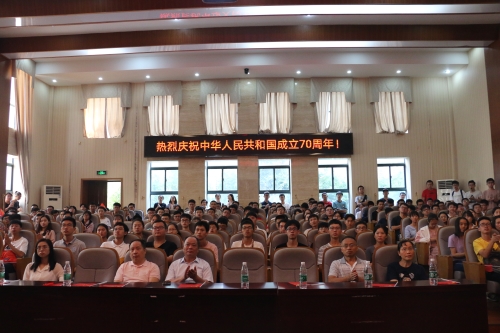 庆祝大会开始,伴随着雄壮的国歌声,鲜艳的五星红旗缓缓升起,全场师生齐声高唱中华人民共和国国歌。大家认真聆听了中共中央总书记、国家主席、中央军委主席习近平发表的重要讲话。