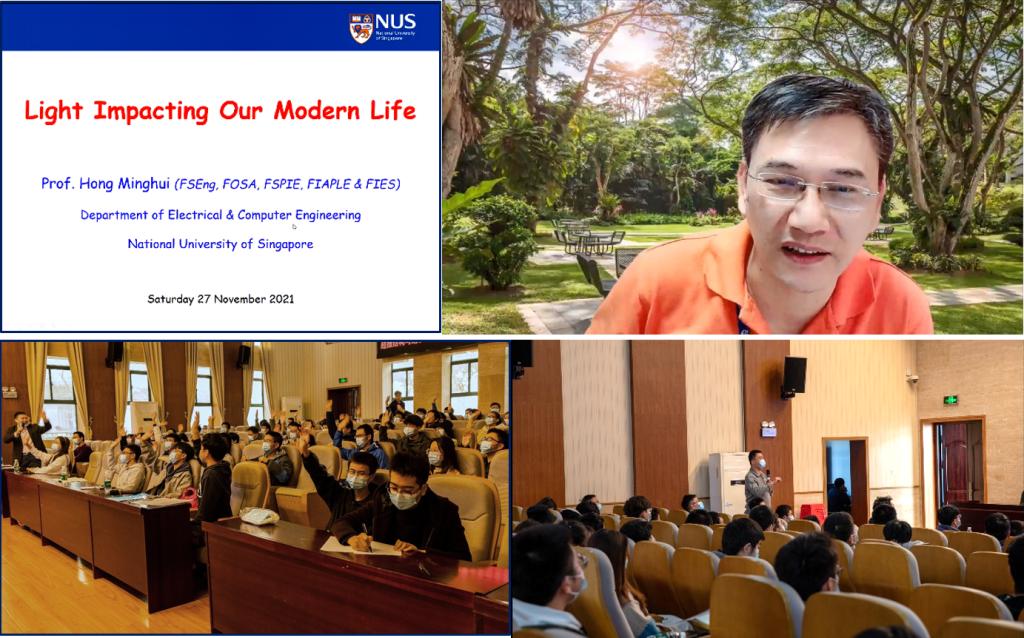 会议邀请新加坡国立大学洪明辉院士以“Light Impacting Our Modern Life”为主题开展学术报告(名师名家讲坛)。洪明辉院士介绍利用光场操纵原理在突破显微镜分辨率极限和实现表面拉曼光谱增强方面的前沿进展,并重点剖析了光学工程领域的发展前景,引发了与会人员的热烈讨论。