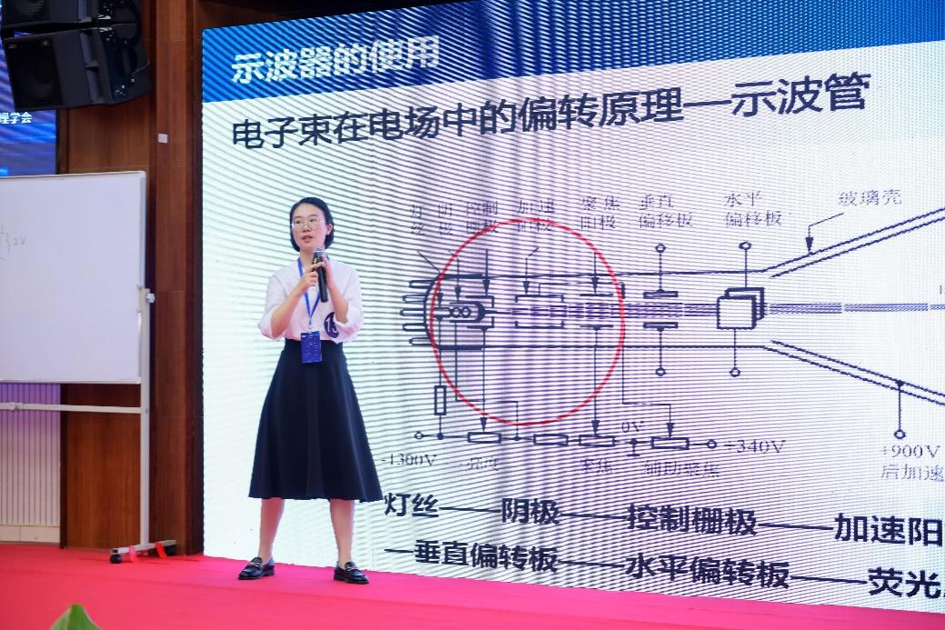 来自广西民族大学的陈哲耕老师则给大家展示了“示波器的使用”实验教学过程。她首先介绍了示波器的广泛应用,然后详细分析了模拟示波器各个部分的功能,阐明了示波器测量信号的工作原理,用示波器显示的优雅、美丽的李萨如图形来引导员工去探索广泛存在于自然界中的美丽。