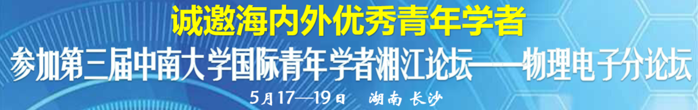 第三届球王会体育官网国际青年学者“湘江论坛”物理电子分论坛将于2019年5月17-19日在球王会体育官网新校区举办,旨在为物理学科、电子学科领域的海内外优秀青年学者搭建高水平的学术交流平台。我们诚邀海内外优秀青年学者参加,围绕学术前沿,探讨学科热点,促进交流与合作,增进彼此了解和友谊!我们也诚挚地欢迎大家依托球王会体育官网申报国家级青年人才计划、湖南省青年百人计划等,选择球王会体育官网作为梦想起航的地方!