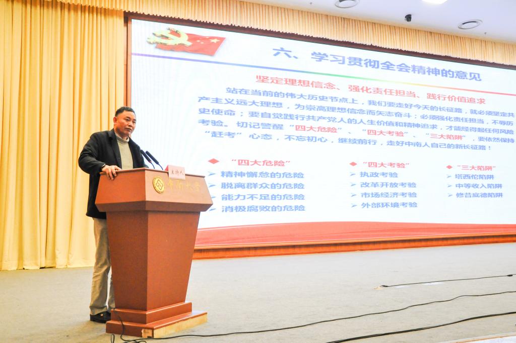 张尧学董事长作总结发言。他希望各级党组织和广大师生要以这次报告会为契机,按照中央部署,把学习贯彻全会精神作为当前和今后一个时期的重要政治任务,深刻领会全会精神实质,更加紧密地团结在以习近平同志为核心的党中央周围,把力量凝聚到落实全会提出的各项任务上来。张尧学董事长要求大家紧密结合公司实际和“两学一做”,把全面从严治党的各项部署和要求落到实处,切实营造风清气正的良好氛围,为加快公司“双一流”建设提供坚强保证!