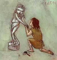 古希腊神话中记载了这样一个故事:皮格马利翁是古希腊神话中塞浦路斯国王。这个国王性情孤僻,常年一人独居。他善于雕刻,孤寂中用象牙雕刻了一座表现了他理想中的女性。久而久之,他竟对自己的作品产生了爱慕之情。他祈求爱神阿佛罗狄忒赋予雕像生命。阿佛罗狄忒为他的真诚所感动,就使这座美女像活了起来。皮格马利翁称她为伽拉忒亚,并娶她为妻。于是, 后人就把由期望而产生实际效果的现象叫做皮格马利翁效应。