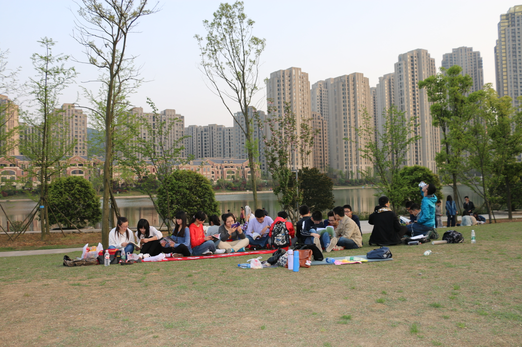 到达梅溪湖公园时,此地阳光正好,春风习习,空气里的阵阵花香令人心旷神怡。同学们在团支书的带领下,一起畅游梅溪湖,欣赏着桃花岭、中央绿轴与节庆岛等景点的自然风光。一路上大家畅所欲谈,谈天谈地谈人生,在交流中增进对彼此的了解。随后,大家在一块空草地上席地而坐,在春日的暖阳下静心地徜徉于书本之中。