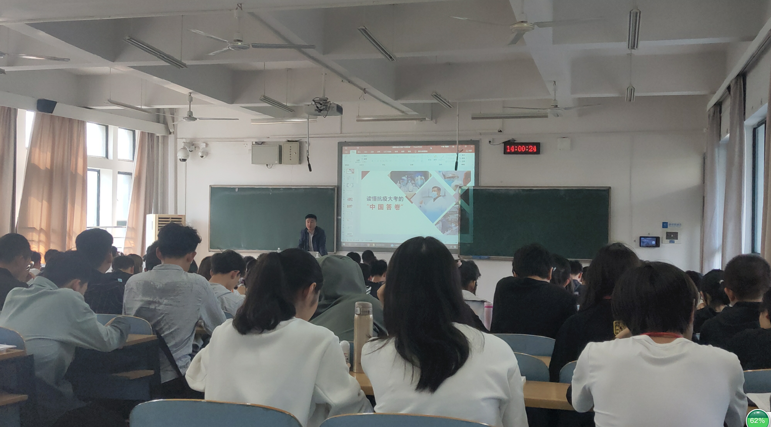 杨凌云老师以“读懂中国抗疫这张答卷’”为题展开讲授。通过讲述党和政府的应对布局,全国人民的万众一心,心系天下的大国担当等各方面的具体事例,凸显了抗疫时期中国人民所作出的牺牲奉献和中国人民所具备的顽强意志。