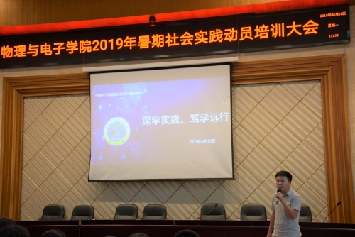 6月11日中午,物理与电子公司2019年暑期社会实践答疑会在物理楼116报告厅顺利举行。会议由分团委书记杨凌云老师主持,参与本年度暑期社会实践的百余名员工参加会议。