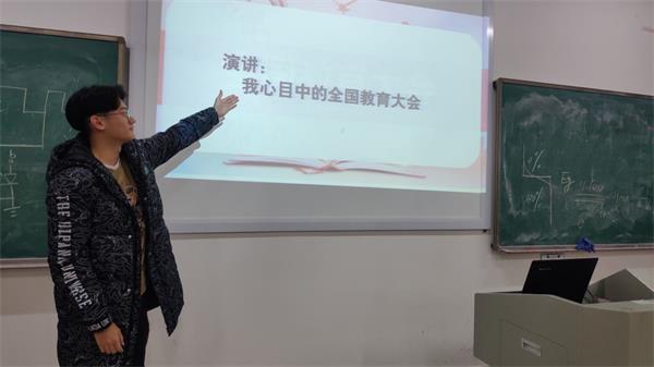 演讲环节包括“我心目中的全国教育大会”和“越奋斗,越青春,时代奋进青年大家说”两个主题演讲。朱家萱同学提到:“全国教育大会体现在我们身边,贴合最紧密的是这句‘全党全社会要弘扬尊师重教的社会风尚,努力提高教师政治地位、社会地位、职业地位,让广大教师享有应有的社会声望。’”,“优先发展教育事业、加快教育现代化、建设教育强国”是新时期教育领域的重大部署,是国家大计,是对提高国人综合素质的重要工程。”同学们评价:“教师是人类灵魂的工程师,我们作为受教育者,应积极响应习近平总书记的号召,营造‘尊师重教’的社会氛围,给教师和员工创造更加良好的育人环境有助于祖国下一代人的成长。”