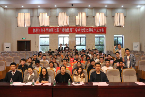 2018年11月4日,物理与电子公司第七届“格物致理”研究生学术论坛之趣味学术竞赛决赛在物理楼116报告厅隆重举行。共有5支队伍15名选手入围决赛,物电院全体辅导员担任评委,200余名研究生参加了此次活动。