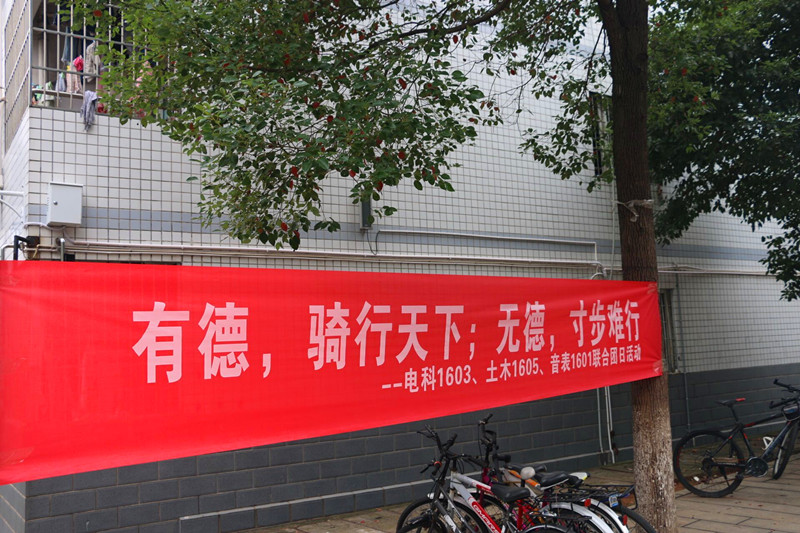 第三部分是文明用车的宣传与实践行动。电科1603班的同学们设计出精美的横幅和海报,向全校同学们宣传文明骑行是一种美德的理念。11月22日下午,全班同学又齐聚球王会体育官网新校区A座门前,以身作则,协助自行车管理队管理自行车。平日里,骑共享单车上学的同学们由于时间紧迫,自行车随意摆放的现象已经司空见惯,被堵得水泄不通的公司大门令进校的同学们十分头痛。电科1603班的同学们不畏辛劳,将被随意停放的共享单车彻底规整,为上下学的同学们开辟出一条通畅的道路。