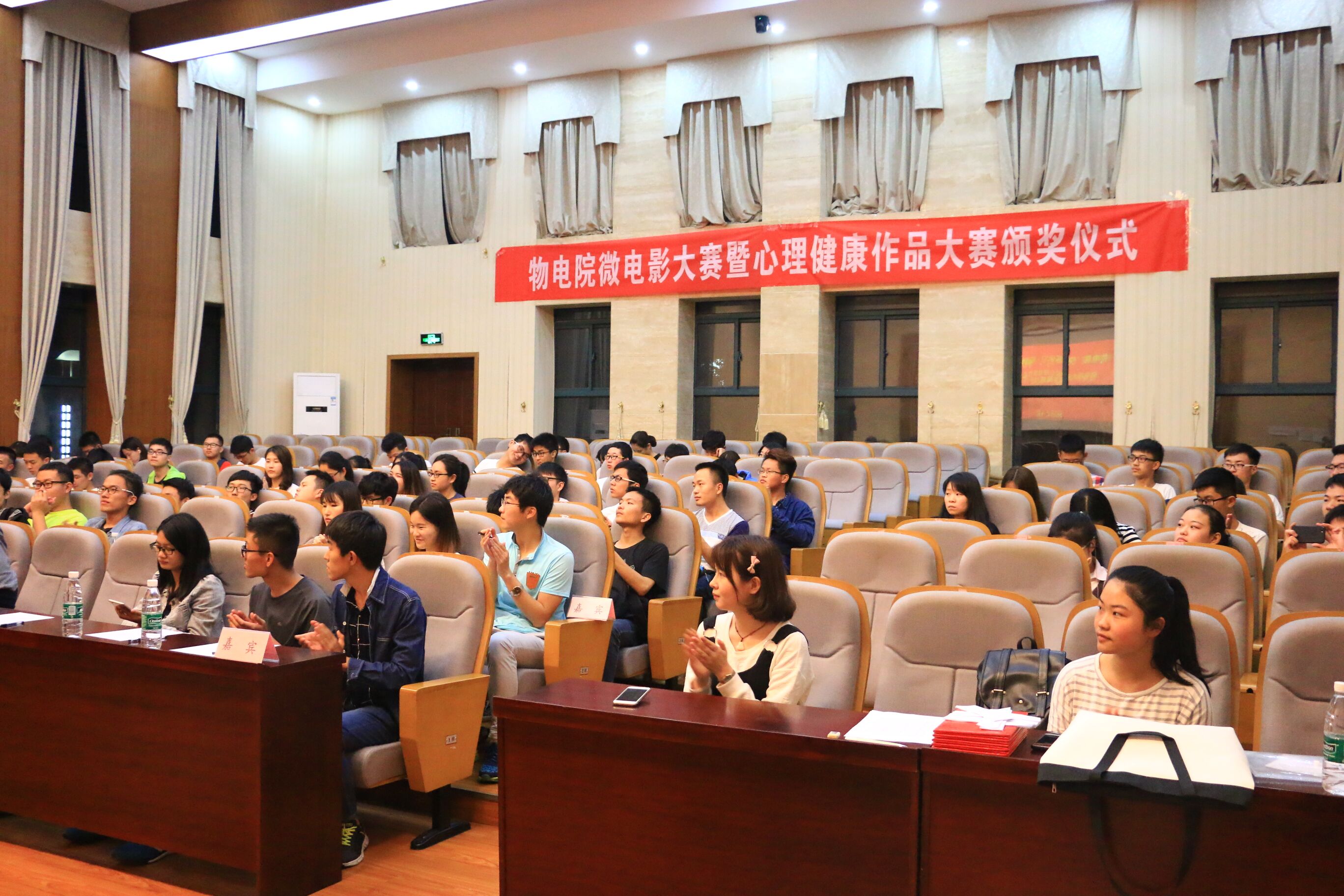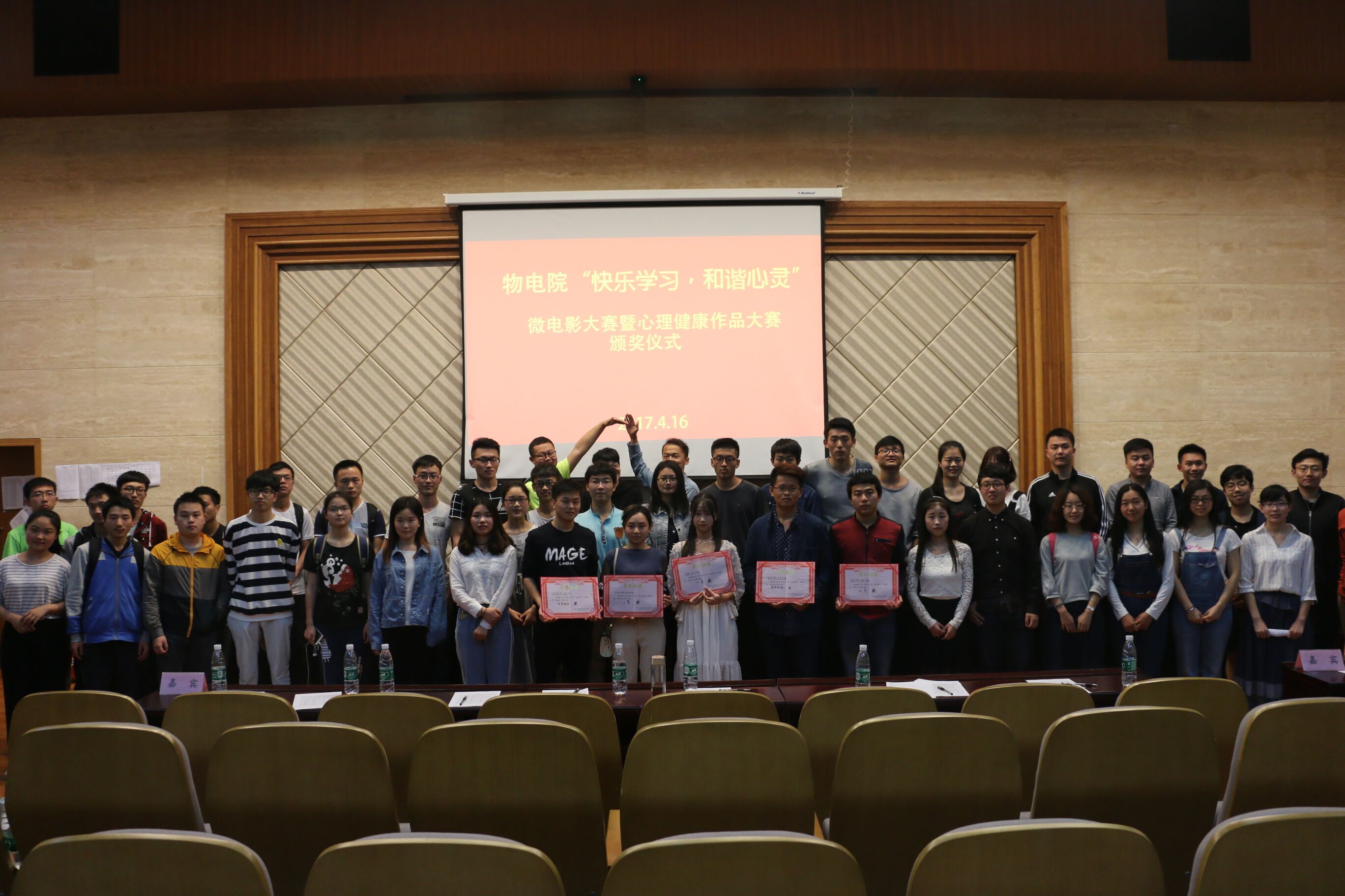 4月16日19:00,以“快乐学习,和谐心灵”为主题的微电影大赛暨心理健康作品大赛颁奖仪式在新校区物理楼116报告厅顺利进行。本次活动由物电院团学会心理健康协会主办,邀请了物理与电子公司分团委书记杨凌云老师,15级辅导员丁俊男老师,16级辅导员肖佳珣老师以及数统院、化公司、机电院各心协会长作大赛评委。