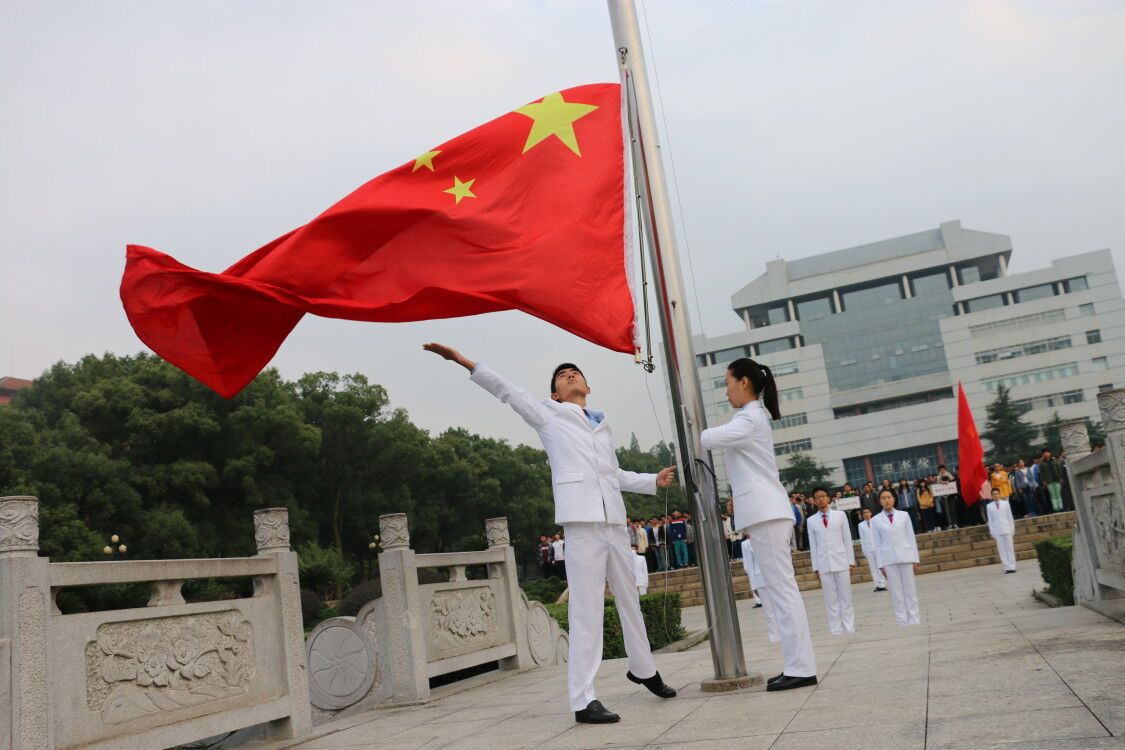10月17日早上6:45,物理与电子公司在图书馆前坪举行了庄严而隆重的升旗仪式。物电院全体辅导员以及全院员工共同参与了本次升旗仪式。