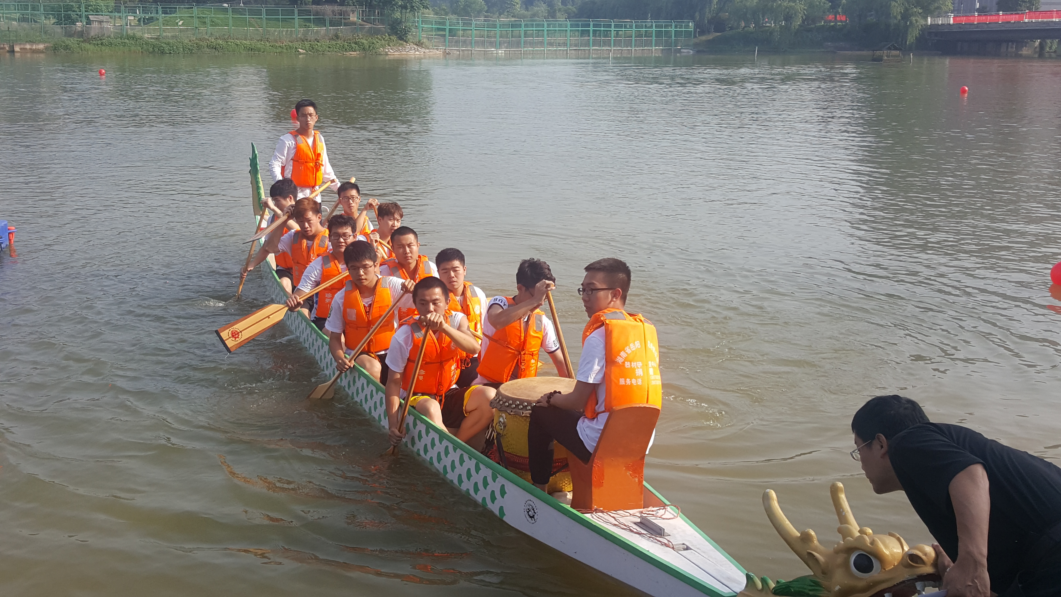 6月5日上午8时,2016球王会体育官网第四届运动会龙舟比赛在新校区玉带河顺利举行。体育教研部长周成武老师莅临比赛现场,为队员们加油助威。本次比赛以二级公司为单位报名,共有二十多个公司龙舟队参加。物理与电子公司龙舟代表队齐心协力,奋勇拼搏,最终斩获第九名的优异成绩。