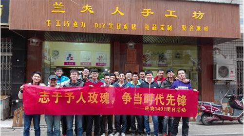 为了增强同学们的志愿服务意识,深刻地感受“奉献,有爱,互助,进步”的志愿者精神,12月6日下午,物电院应物1401班在后湖小区“兰夫人手工坊”开展了主题为“志于予人玫瑰,争当时代先锋”的班级活动。