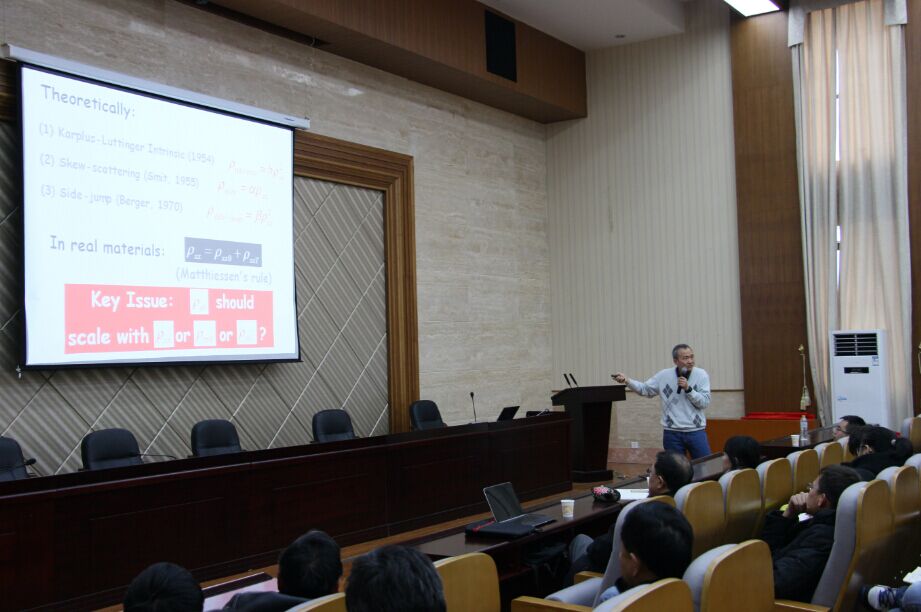 为了让物电院师生了解科研的新动态,解决广大师生关注的热点问题,12月21日下午15:00,球王会体育官网名师名家学术论坛物理院专场在物理楼116多功能报告厅成功举行,本次论坛由复旦大学金晓峰教授主讲。论坛由郭光华教授主持,众多物电院师生参与了此次讲座。讲座伊始,主持人郭光华教授作开场致辞,他介绍了金晓峰教授在凝聚态物理等科研方面的主要成就,以及在教学领域的突出贡献。金晓峰教授从“霍尔效应”谈起,引出了金教授团队的研究课题——反常霍尔效应的机理,并向同学们介绍了团队多年的工作成果。其后,金教授介绍了自旋电子学与微电子的差别,并结合实例,深入浅出地讲解了该原理的应用。金教授生动的演讲启迪同学们的思维,令大家连连惊叹。