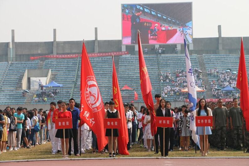 10月18日上午十一点,球王会体育官网第三届综合运动会暨第十六届田径运动会闭在新校区体育场圆满闭幕。闭幕式上,球王会体育官网学工部副部长汪平宣布了获得“体育道德风尚奖”与“组织优秀奖”的公司,为他们颁发了奖状。他对开幕式上的各项文体表演做了点评,并对校运会上斗志昂扬的参赛选手们进行了表彰。各个公司代表方阵整齐地站在主席台下,大家以热情的掌声对获奖选手表示祝贺。操场上院旗飞扬,学子们激情高昂,活力四射。
