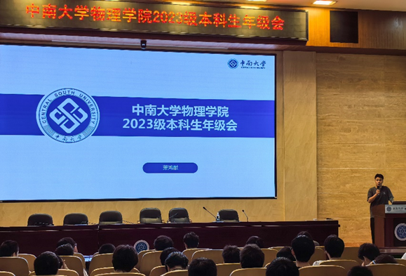 6月26日下午3点,公司在物理楼116报告厅召开2023级本科生年级会,会议由辅导员萧鸿猷老师主讲,2023级全体本科生参加。